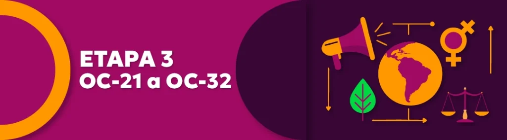 En esta etapa (OC-21 en adelante), la Corte entra en una fase claramente expansiva y con mayor densidad política. Ya no sólo interpreta derechos existentes, sino que contribuye activamente a definir nuevos estándares en temas emergentes como el medio ambiente, la identidad de género o la protesta social. Además, interviene en debates estructurales sobre democracia y poder, como la reelección presidencial. En esta etapa, la Corte adopta enfoques más complejos —como la interseccionalidad o las obligaciones extraterritoriales— y se posiciona como un actor que no sólo resuelve disputas jurídicas, sino que orienta proyectos normativos para la región.